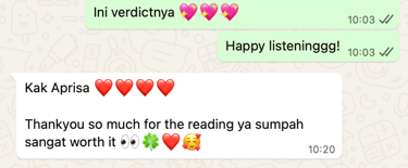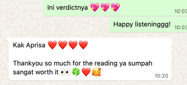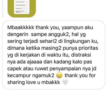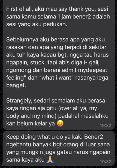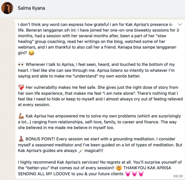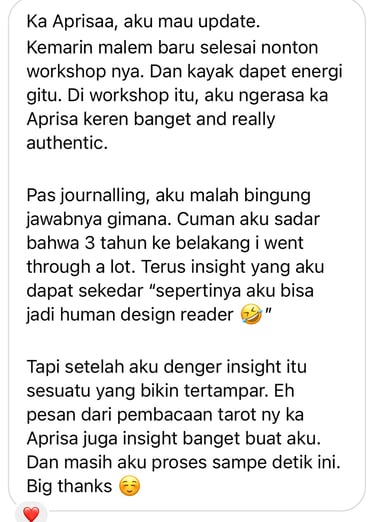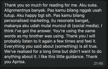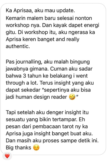 Even now I have a prompt that I always carry with me whenever I feel stuck: WWAD or "What Would Aprisa Do?" because our sessions had ended but the lessons would stay with me forever. You truly are a blessing, Apicaw. ❤️